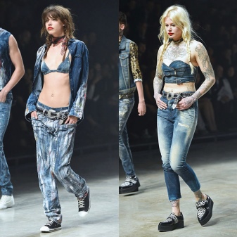 The use of different technologies both in decor (scuffs, holes) and in coloring (different colors) shocked young people. This non-standard immediately gained a lot of fans.