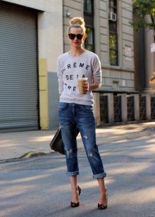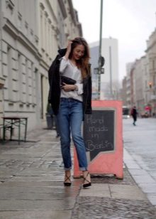 Girlfriend jeans are street style, so this fact should be considered when choosing a top. The top of the wardrobe should often become an accent in the embodiment of a stylish image.