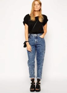 To emphasize the elegance and femininity of girlfriend jeans, it is necessary to carefully select the shoes. So, this style is ideally combined with high-heeled shoes, platform ankle boots or wedge sandals. To embody a bold bow, you can stop on sports shoes - moccasins or sneakers. For a classic look for lovers of shoes without heels, loafers or boats are suitable.