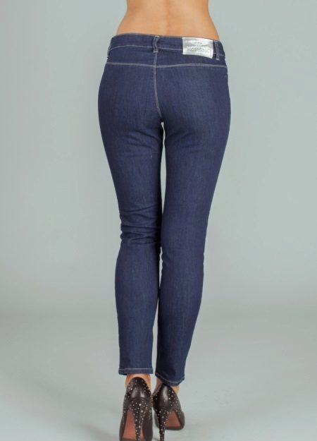 For girls with a non-standard figure, the 10644 model in indigo color, which has a low rise and zipped pockets, will be an excellent solution. From the knee comes a flare that makes the legs visually slimmer.