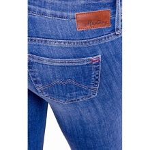 You can combine a Mustang skinny with a light blouse or shirt. A combination with a wide tunic or print T-shirt will also be ideal.