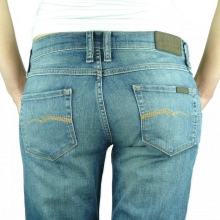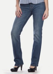 These jeans are best worn by slim girls to increase the main effect of this model - wide trousers and a low waist. Designers pay much attention to the decor of such genies. Despite the preference of the brand to remain classic, fashion did not pass Mustang. Now in their piggy bank there are boyfriends with tears on their knees or along the entire length of the leg, shortened by the ankle or middle of the calf.