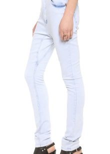 Fashionable tight-fitting jeans for women are produced not only in the classic color scheme, but also in bright colors. Skinny models may also be frayed. Torn on the knees or along the entire length of the leg. Designers offer skinny stitching in front or behind.Skinny is ideal for girls with an hourglass figure, as well as for owners of thin figures.