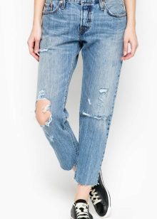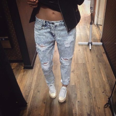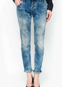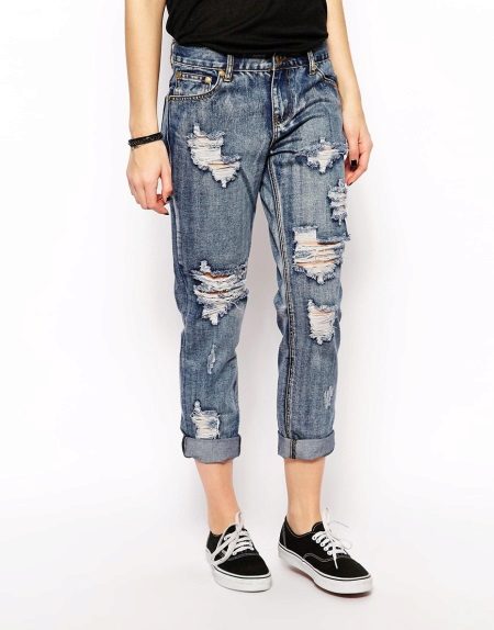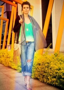Wearing boyfriends is preferable with transparent and light blouses, tops of various lengths.