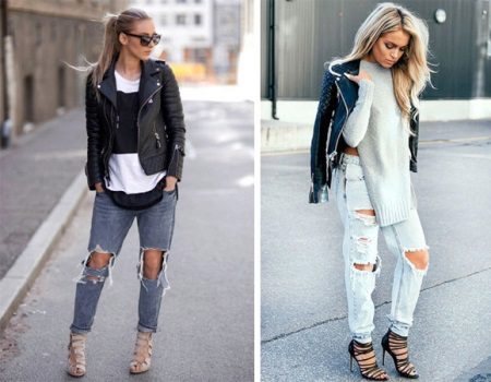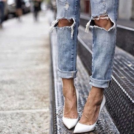 To be bright and extraordinary is the main idea of designers in the manufacture of ripped jeans. And jeans ripped on their knees will tell about the beauty of the legs of their mistress.