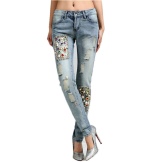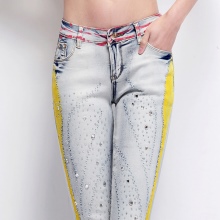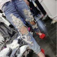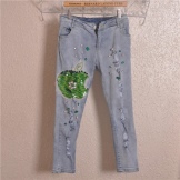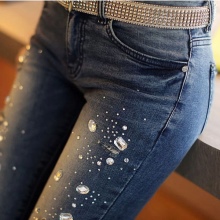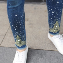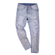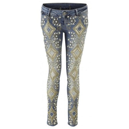 Jeans embroidered with beads and rhinestones