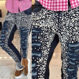 Bright purple, orange, pink, green, yellow jeans look great with tops and T-shirts in white and black. Rhinestones in this case can be multi-colored, and drawings or embroidery more original and voluminous.