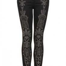 Very often there are jeans with a decoration in the form of an ornament of beads located on the outer seam of the legs.