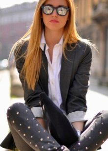 Combinations of contrasting color clothes, for example, a snow-white top and black jeans, look original. To create a strict, business image, beads or rhinestones, it is advisable to choose the tone of jeans.