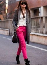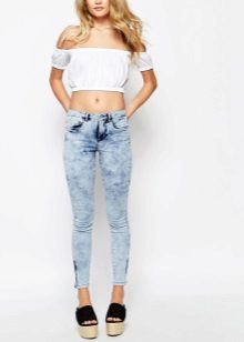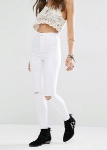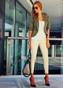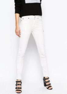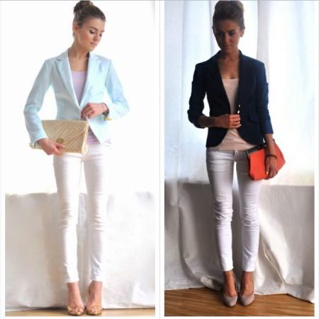 White trousers are an exclusively summer version of clothing, impractical, but incredibly effective. The combination of white skinny jeans with tops and shoes with bright, saturated colors looks very nice.