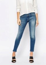 The soft, stretchy material from which the skinny jeans are made fits the figure so that it emphasizes every crease and bulge. And even corrective underwear is powerless here, as it will be noticeable under a thin cloth. Therefore, girls with full hips and legs from this variety of jeans are recommended to refuse and give preference to direct or slightly flared models.