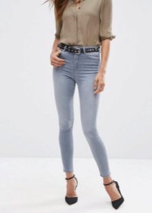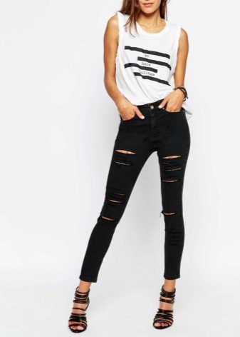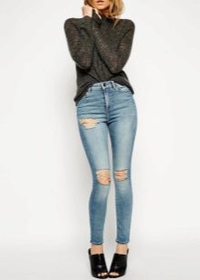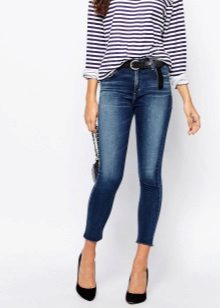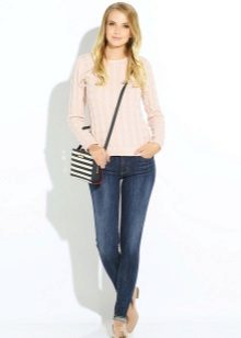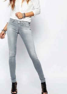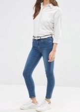 As for shoes, the most effective skinny look with high-heeled shoes and sandals. The advantage of this style of jeans is that you can easily fill them with boots or high boots. If you prefer a flat sole, then pay attention to stylish sneakers, ballet shoes, moccasins and other comfortable shoes.