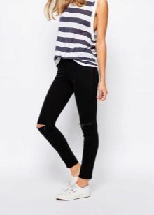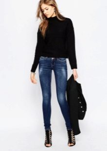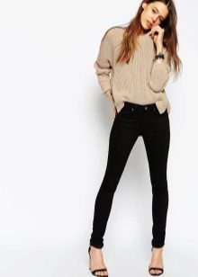 Black skinny jeans are a kind of replacement for business trousers. For the office, they may be too frank, but in everyday life they look great. Black skinny pants go well with shirts, cardigans and cardigans.