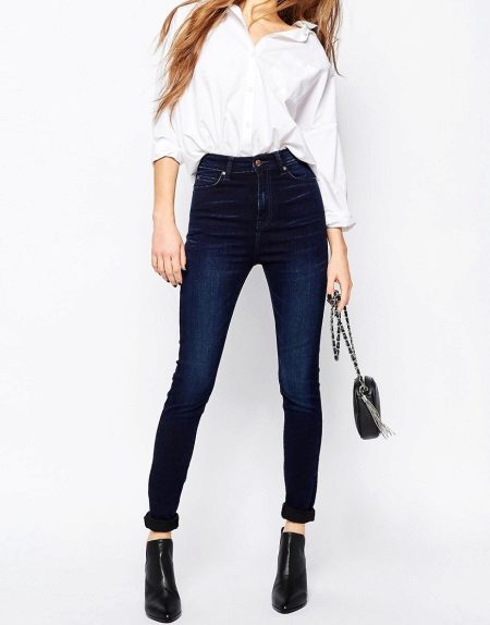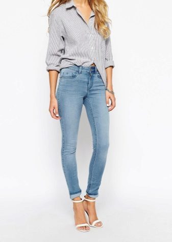 Skinny looks best on thin girls with straight legs, regardless of height. If you are concerned about a protruding tummy, choose jeans with a high waist - they act like a bandage, correcting the problem area.