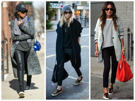 In cool weather, skinny jeans can be worn with raincoats and leather jackets, voluminous sweaters and long cardigans.
