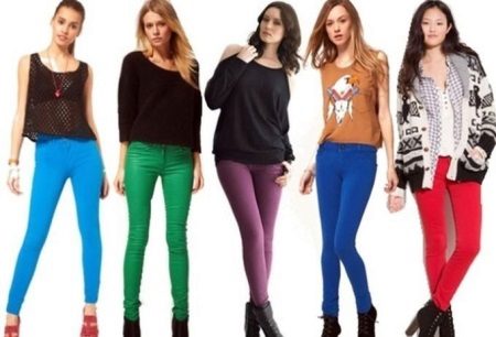 Bright skinny - the most spectacular version of this style of jeans. You can safely choose your favorite colors and experiment with combinations.Yellow, raspberry, turquoise, burgundy - among such a variety of colors, you can definitely find a model to your liking.