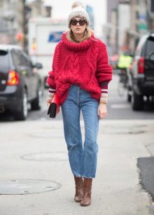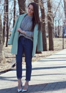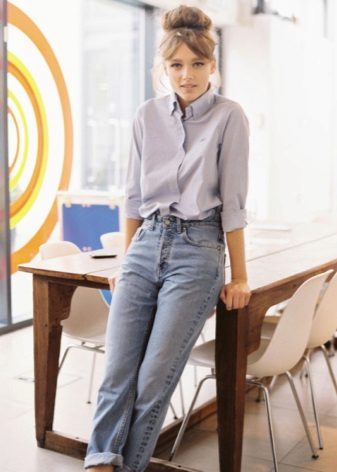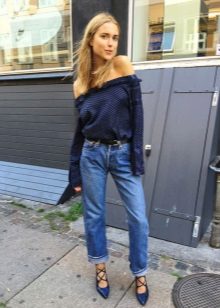 With jeans of a narrowed or tight-fitting cut, a voluminous top will look beautiful. You can choose tops, blouses, tunics, sweatshirts or cardigans.