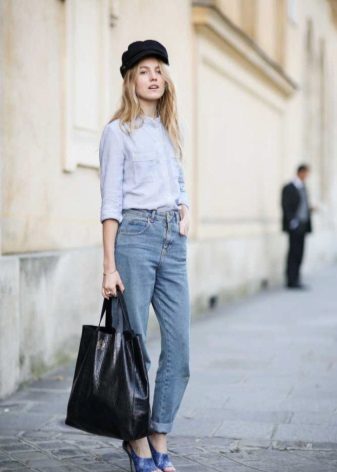 With cropped jeans, it is customary to carry not only small clutch bags, but also large and roomy ones. The choice is completely individual.