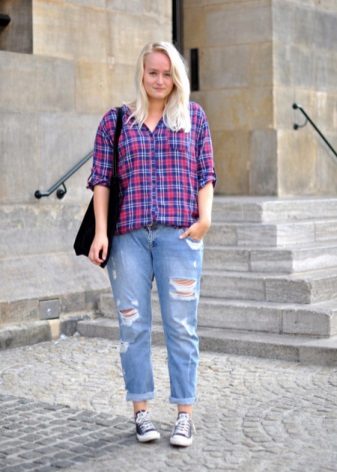 Shortened boyfriends can have tucked up or cut off legs, while the seams can also be sloppy. For brutal models, it is worth choosing vests, but more fitting options can be combined with blouses from flowing fabrics.