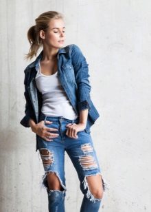 - Blue jeans are usually a summer, lightweight option. They are combined with bright and light clothes made of thin fabrics.