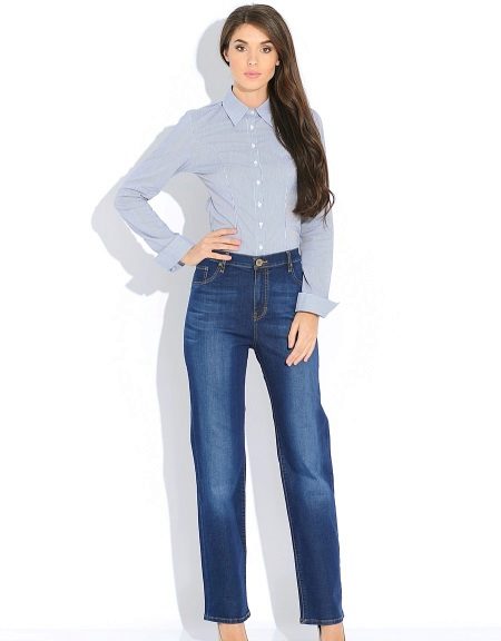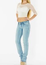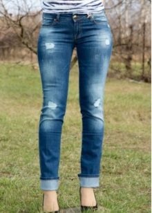 - There are three options for planting jeans - high, low and medium. The latter option is considered universal, since it is suitable for almost everyone. Full-bodied young ladies are recommended to give preference to trousers with a high waist, but a low waist goes only to rather slender girls.