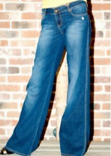 - Mid-rise blue flare jeans. This is a lightweight model designed for the spring-summer season, so it is sewn from thinner and softer denim.