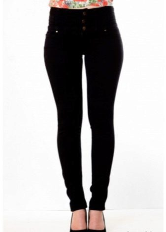 - Black skinny jeans look very impressive thanks to their high rise. The dense waist part on the button fasteners acts as a bandage, pulling up the tummy and forming a waistline.