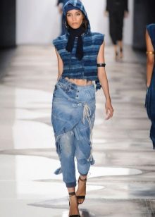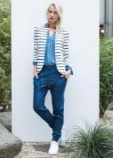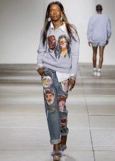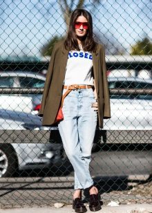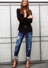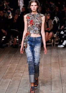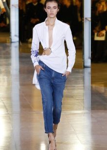 Of course, there can be no talk of any skinny or slim. There should be jeans of a free cut, slightly narrowed to the bottom.