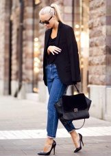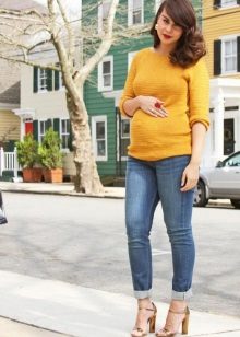And one more important trifle: jeans for walks should be with a high waist.But if the future mother is engaged in sedentary work, in this case it is better to choose pants with an average fit.