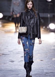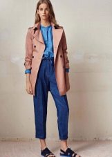This season, straight jeans, narrowed to the bottom with elastic, will be at the forefront of fashion. This design move allows you to simplify the design.