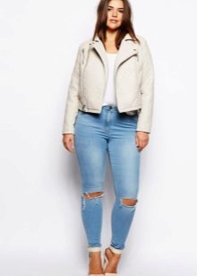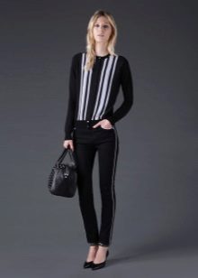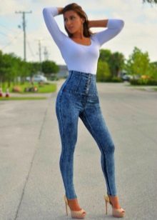 A great option for girls with a perfect waist - skinny jeans with a high belt.