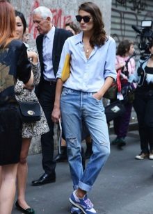 Women whose figure can be called a “pear” or “apple” are better suited to models of boyfriend jeans.