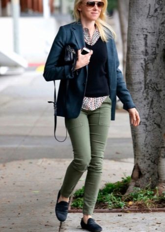 The main rule in such an ensemble is to exclude elements of a sports orientation. The most preferred colors for moccasins are brown gamma or any actual bright colors (buttercup, mint, cornflower, fiesta, green flash, etc.).