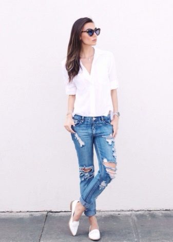 It is important to correctly combine colors: with blue and white models, shirts and tops of pastel colors look better. Dark jeans can be combined with deeper and more aggressive colors. This also applies to a turtleneck or any other tight blouse.