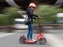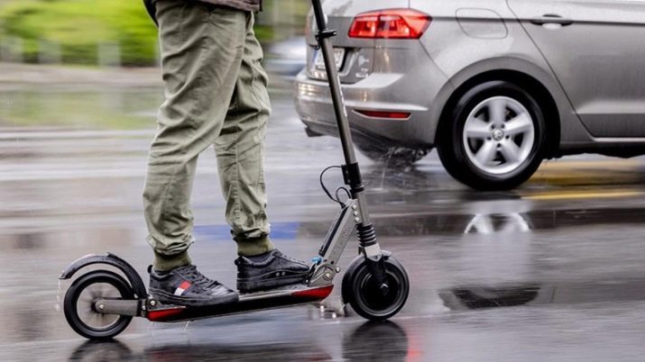 - Danger to the passenger. It is difficult to come up with a type of transport on which the rider would be protected even less than on a scooter. The maximum that you can think of for safety is the minimum “set of a cyclist” from a helmet and elbow pieces with knee pads, but at high speed they certainly will not save from injuries.In addition, a scooter with a motor, unlike the same bike, is noticeably more difficult to control at steep turns, because manufacturers prefer to set a relatively low top speed for the device.