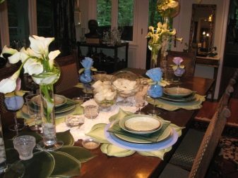 Etiquette does not set strict requirements for decor. Everything is left to the discretion of the owners of the house.With an acute shortage of time, you can abandon it. Remember: candles, freshly cut flowers and delicately laid out napkins will make the atmosphere more pleasant. At the same time, decorative elements should not interfere with those who are sitting at the table.