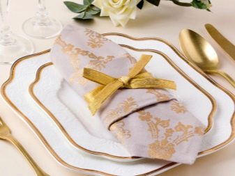Ordinary lunch does not impose special requirements on the type of napkins. On a holiday, it is advisable to take a set of linen napkins that match the color of the tablecloth or contrast with it. The correct layout - on a special plate, in the form of a cone. Flowers should be taken only those that do not violate the harmony of the tablecloth and cutlery.
