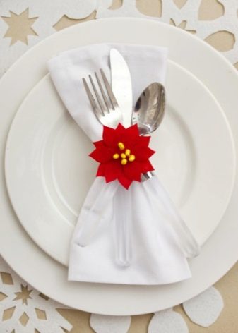 In addition to placing forks and spoons, you can also decorate a napkin with its spruce twig, flower, dried autumn or juicy fresh leaf or other.