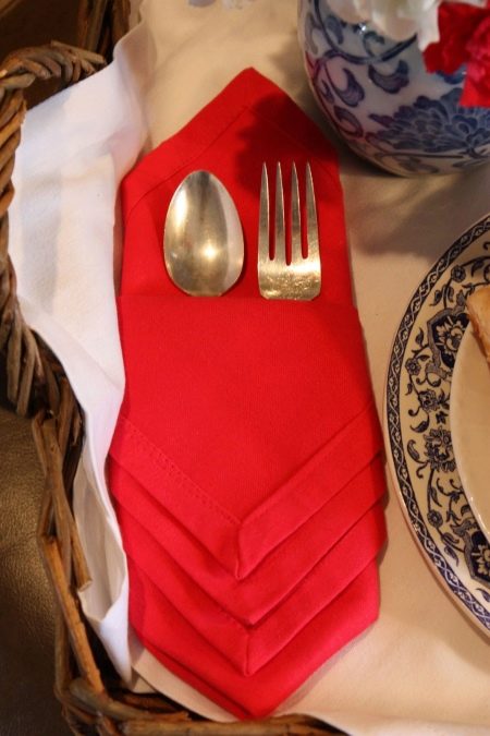 - the final step is to put the fork and knife in the first pocket, and in the second a sprig of greens, a flower or a paper towel.