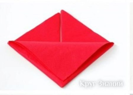 - Now you should bend the top of the corner bent in the previous step down exactly in the middle so that its top is connected to the horizontal edge of the napkin;