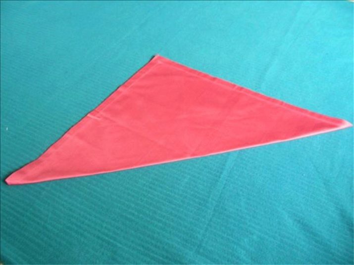 - then gently tighten the base of the triangle, rising up until about 6-8 cm remain to the upper corner;