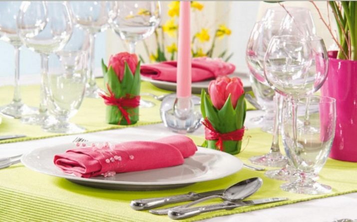 For a women's holiday, something light and tender is needed. Here, napkins folded in figures of flowers, for example, lilies or roses, will be very useful.