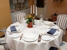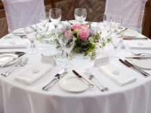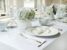 When choosing a tablecloth, white is preferred, but other colors can be used if desired, if they are in harmony with the decorative elements in the room. The table, covered with a lace tablecloth, looks very gentle and spectacular. The hostess can put oilcloth on a white or lace tablecloth so that guests do not accidentally stain it during dinner.