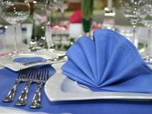 - Table setting.You need to lay a tablecloth, put napkins, which were previously selected in the same tone and style. In addition to paper, cloth napkins are placed, which guests put on their lap.