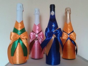 For festive decor, you can use improvised materials. In skillful hands, an ordinary glass vase can turn into an original item by wrapping it with decorative cloth or burlap and tying it with ribbons or lace.