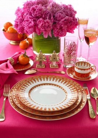 There are certain rules in table setting and room design. On the table with a tablecloth put dishes and cutlery, arrange glasses, glasses, use auxiliary devices. When arranging the plates, the main rule is taken into account: plates are placed half a meter from one another, one centimeter back from the edge of the table.