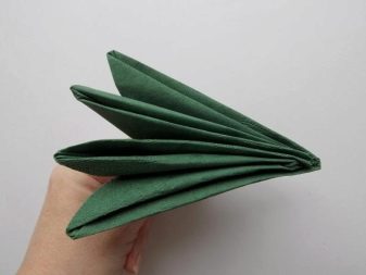Then this is repeated from all angles. This Christmas tree is suitable for serving plates. Such an algorithm will help to make a more voluminous Christmas tree from a fabric napkin or a small towel.