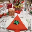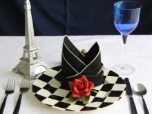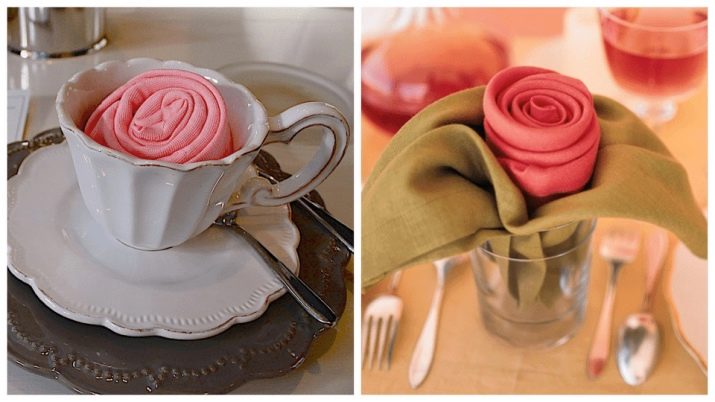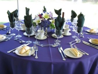 If a thematic holiday is made out, then you can turn on your imagination and pick up tablecloths in any combination. Original colors require some folding methods. For example, a rose or a Christmas tree will look much better in red or green than white.