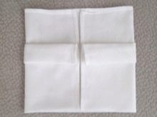 - the napkin is folded in half into a rectangle, each corner of which is bent to the center;