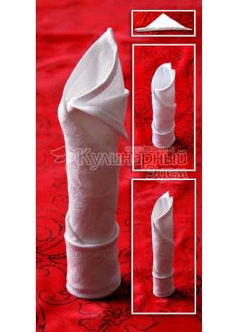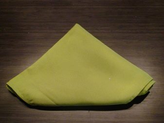 - the napkin unfolds face down, the upper corners are bent so that a house turns out, then the bevels are wrapped twice and the structure is turned over;